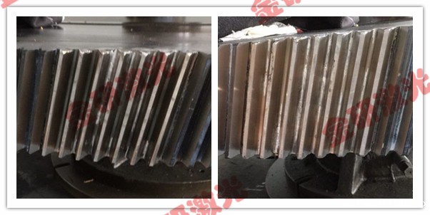 沈阳米兰体育app手机下载最新版本安装激光近日修复了材料为35CrMo的大型齿轮,该齿轮直径约2.6米,经检查发现齿根断裂且齿面有裂纹。要求修复后其表层硬度需达到HRC62~65,内部硬度需达到HRC32~36,因原工件表面做过渗氮处理,本身耐磨性、表面硬度等都很高,处理难度较大。